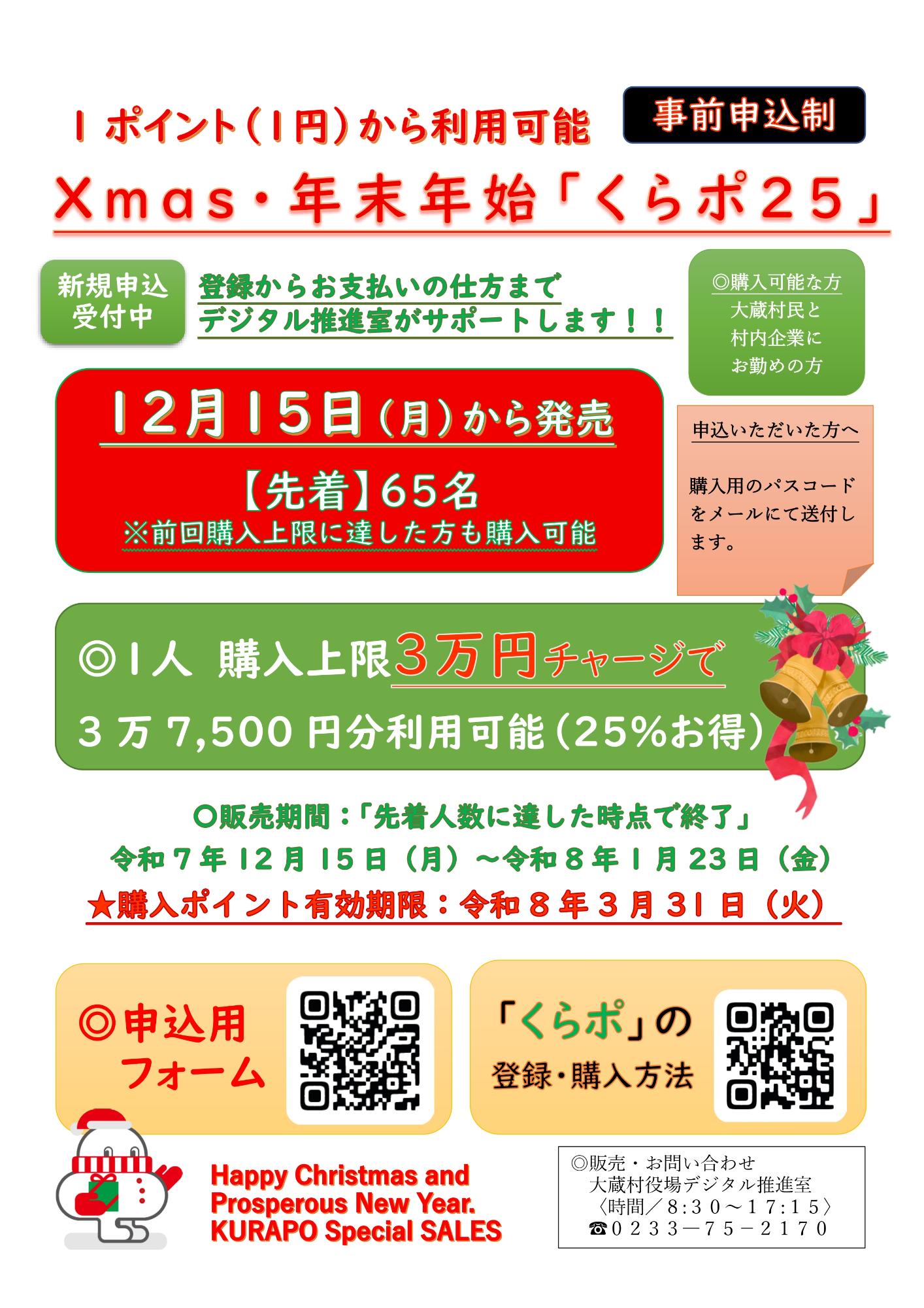 Xmas.年末年始【くらポ25】(村民・村内企業にお勤めの方限定)