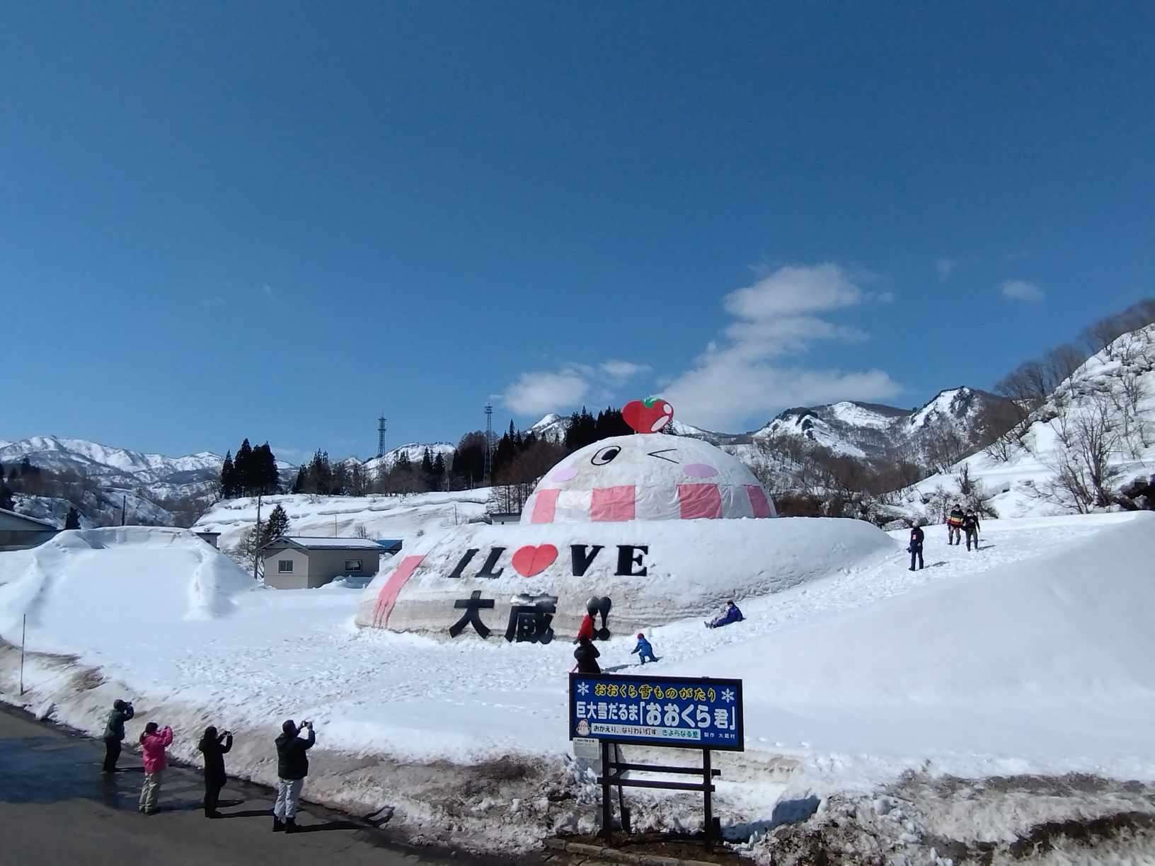 県内でも有数の豪雪地として知られる大蔵村には、毎年冬になると、世界一の雪だるま「おおくら君」がお目見えします。